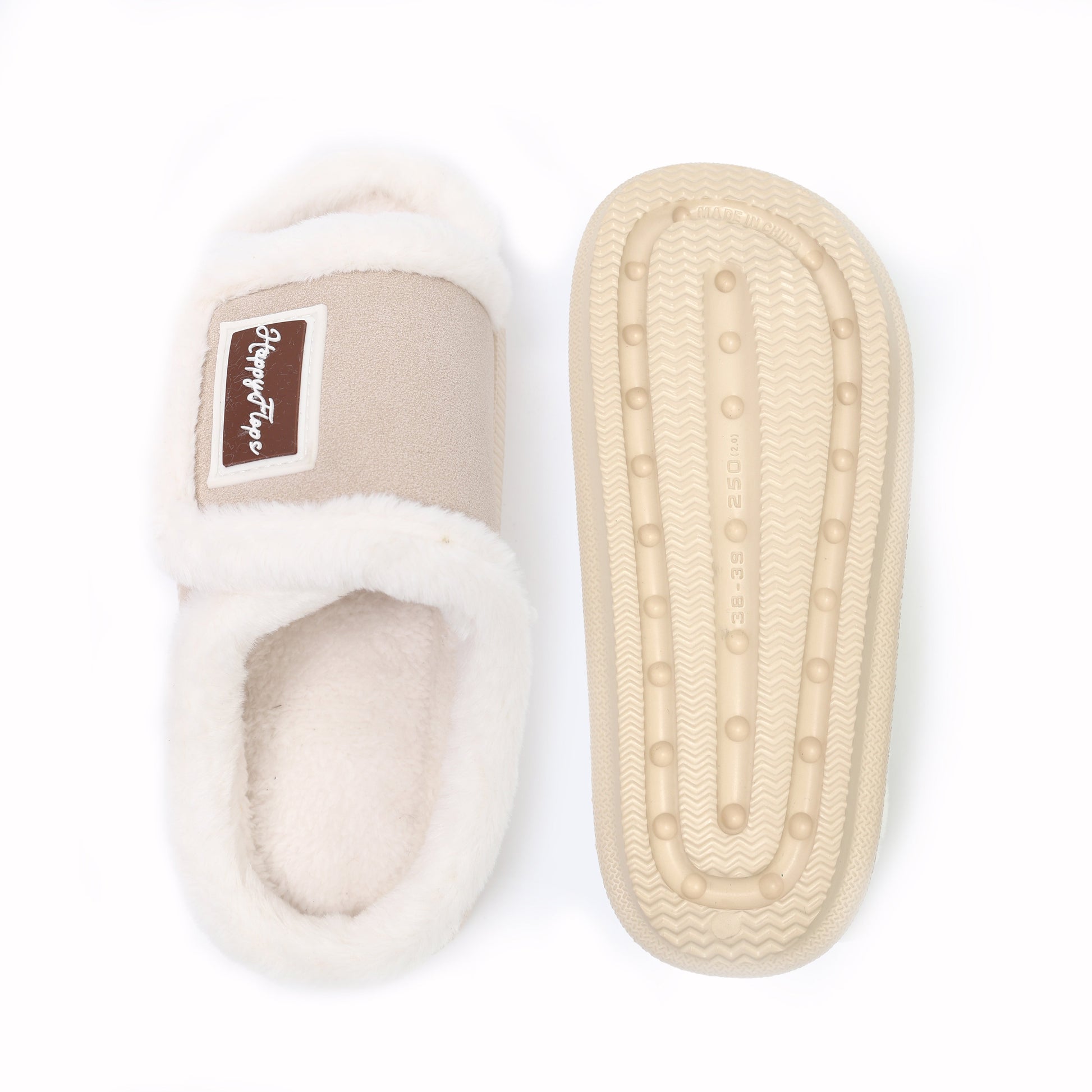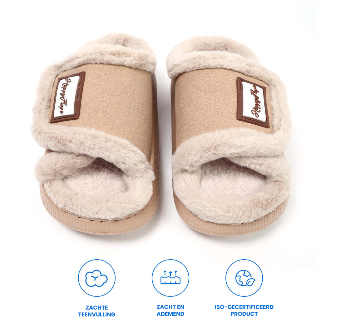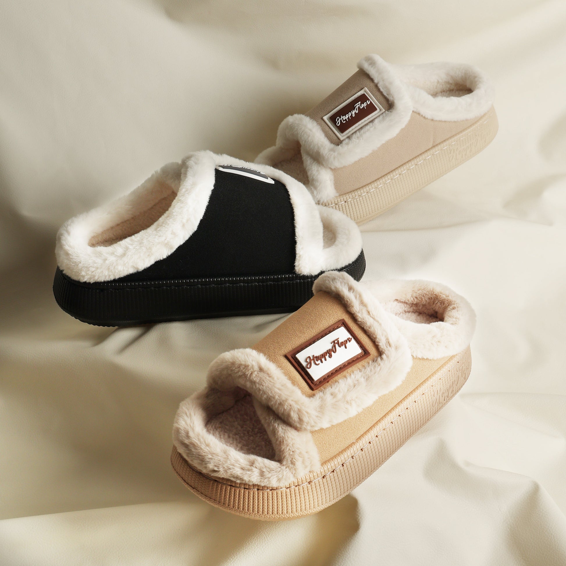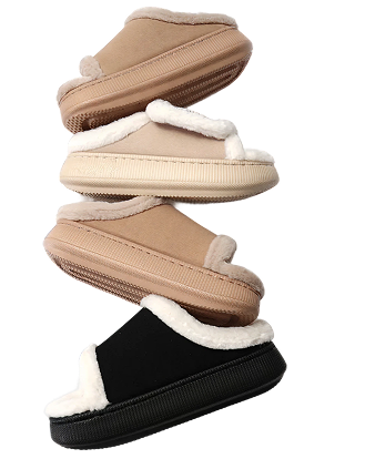 HappyFluffs są wykonane z wegańskiego pluszowego futerka i wytrzymałego materiału EVA, łącząc w sobie ciepło i komfort dla Twoich stóp.