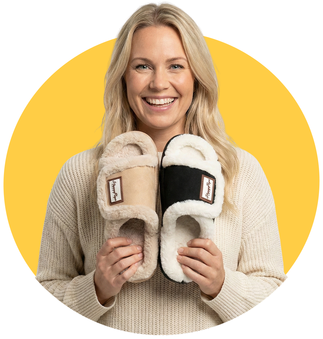 HappyFluffs są dostępne w szerokiej gamie rozmiarów, aby dopasować się do różnych kształtów stóp i preferencji. Przed zakupem zalecamy zapoznanie się z naszą szczegółową tabelą rozmiarów, aby znaleźć najlepszy dla siebie rozmiar. Jeśli rozmiar znajduje się pomiędzy dwoma rozmiarami, warto rozważyć wybór większego rozmiaru dla dodatkowego komfortu, zwłaszcza jeśli zimą lubisz nosić grubsze skarpety. Nasza konstrukcja obejmuje również szeroki czubek, aby zapewnić naturalne dopasowanie i wygodę.